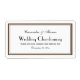 Elégant Brown Cadre Mariage Étiquette à vin / Étiquette à bouteille Élégant, chic et élégant accessoires de fête personnalisable avec un cadre marron. Ce produit fait partie d'une suite de conceptions assorties qui sont facilement personnalisables pour de nombreuses occasions et événements. Si vous avez besoin de cartes RSVP assorties, notes de remerciements, timbres, magnets, étiquettes de bouteilles, menus, cartes d'escorte, programmes d'événements, étiquettes de faveur ou autres accessoires, veuillez consulter nos autres annonces. Si vous ne voyez pas de produit correspondant qui vous intéresse, ou si vous souhaitez voir ce design dans des couleurs différentes, veuillez nous contacter et nous serons heureux de vous accueillir. Veuillez noter qu'il s'agit d'une conception graphique / photo qui est transférée au produit sous-jacent, et ne contient aucun tissu réel, ruban, métaux, gravure, pierres précieuses ou gaufrage. 2013 ©HisMyPartyDesigns Tous droits réservés
