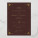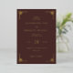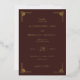 This elegant wedding invitation features a classic rectangular layout with balanced spacing and centered text, creating a sophisticated look. The deep chocolate brown background is complemented by luxurious gold accents, including decorative geometric motifs at each corner that add a vintage touch. The typography combines script and serif fonts to convey formality and intimacy, while the customizable placeholder text allows for personalization of names, dates, and locations. Perfect for couples seeking an understated yet refined design, this invitation sets the tone for a memorable celebration.