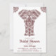 Éblouissez vos invités avec cette élégante invitation à la douche nuptiale ethnique mettant en vedette un bel éléphant artistique contre un arrière - plan blanc. Ajoutez simplement les détails de votre événement sur ce modèle facile à utiliser pour en faire une invitation unique. Retournez la carte pour révéler un élégant motif indien traditionnel marron et blanc au dos de la carte.