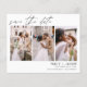 Budget Paysage moderne et élégant Horizontal Four (4) Photo Enregistrer la date Magnet Mariage avec typographie de script manuscrite. L'aimant d'invitation de date inclut la typographie de script et le design chic et simple auquel vous pouvez ajouter votre photo de fiançailles customisée à.