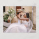 Budget Photo moderne et élégante Enregistrer la Carte Mariage Date. La carte d'invitation à la date inclut la typographie blanche et le design chic et simple sur un arrière - plan blanc que vous pouvez ajouter votre photo de fiançailles customisé à.