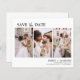 Budget Paysage moderne et élégant Horizontal Trois (3) Photo Enregistrer la date Magnet Mariage avec typographie manuscrite. L'aimant d'invitation de date inclut la typographie de script et le design chic et simple auquel vous pouvez ajouter votre photo de fiançailles customisée à.