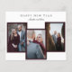 Budget Elegant New Year's 3 photo collage carte de voeux. Back side a un message personnalisé et photo que vous pouvez éditer aussi bien. Caractéristiques cadre rouge pour les photos. Conçu pour les couples nouvellement engagés ou les couples mariés, mais peut être utilisé par les familles aussi.