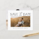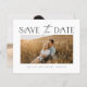 Un élégant mariage photo budget Enregistrer la date avec un type de script moderne et une mise en page simple sur le devant. Le dos a une photo et des détails supplémentaires. Cliquez sur le bouton Modifier pour customiser cette conception.