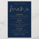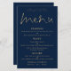 Élégant Script Gold Marine Blue Mariage Menu. Une taille de prix budget 5.5" x 8.5", Un design typographique élégant en or et blanc, avec un script stylé pour le Menu d'en-tête. Personnalisez facilement le reste du texte à vos propres détails qui inclut des alternatives pour vos options végétaliennes ou végétariennes. Vous pouvez également modifier les styles et les couleurs de texte ainsi que les couleurs arrière - plans via l'option customiser plus si vous le souhaitez.