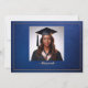 Cette carte de remerciement de graduation a un arrière - plan texturé bleu profond et élégant texte blanc ou argent. Le haut de la carte affiche les mots "Merci" en évidence, suivi d’un message de gratitude chaleureux et personnalisable pour avoir assisté à une cérémonie de remise des diplômes et pour le soutien et la gentillesse du récipiendaire. Le bas comprend une fermeture avec "Avec gratitude" et une ligne de nom personnalisable et une zone sur le dos pour une photo.
