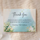 Merci à vos invités de célébrer votre nouveau petit avec ces cartes de remerciement pour le Baby shower Swan. Doté de cygnes d'aquarelle gracieux nichés sur une balançoire romantique dans le jardin, ce design neutre pour le genre est parfait pour un garçon, une fille ou un baby shower surprise. Des bleus pastel doux, des fleurs bleues et des verdure en cascade créent un charme intemporel, conte qui complète n'importe quel thème de pépinière ou de jardin-fête.