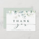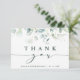 Ce carte de remerciements est composé d'eucalyptus peints à l'aquarelle, de feuilles verts botaniques et bleu clair avec une calligraphie moderne. Parfait pour les mariages, anniversaires, diplômes et autres événements.