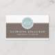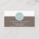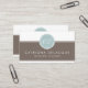 Carte de visite élégante, moderne et élégante avec badge monogramme bleu orné et arrière - plan marron. Ce carte de visite est parfait pour les architectes d'intérieur, les wedding planners ou toute autre profession.