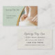 Photo d'une femme recevant un massage encadré d'une arche design et d'un arrière - plan en marbre. L'arrière a le même look marbré pour toutes vos coordonnées ou informations de rendez-vous. Grand carte de visite pour massothérapeute, physiothérapeute ou spa de jour et salons.
