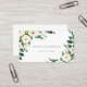 Cet élégant carte de visite à fleurs blanches conviendra parfaitement à un propriétaire de petite entreprise, consultant, styliste et plus encore ! Le design vintage moderne présente de magnifiques rose de couleur d'ivoire et crème et des fleurs de pivoine avec des feuilles vert foncé, de la verdure et des botaniques.
