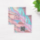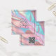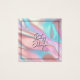 Un carte de visite holographique rose et bleu avec espace pour votre nom et vos coordonnées. Cette conception inclut un code QR au dos.
