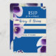 Photo moderne bleu RSVP et avec fleurs et lignes blanches. Personnalisation, conception facile à personnaliser.
