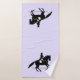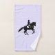 Serviette avec illustration noir et blanc d'un cavalier. Le cheval et le cavalier font une pirouette. Classique et beau. Placé sur un arrière - plan d'aquarelle dans des couleurs pastel délicates et muettes arrière - plan violet clair.