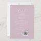 Ces élégantes invitations de mariage rose charme avec RSVP sont parfaites pour un mariage simple. Le design minimaliste moderne présente un rose rose poussiéreux intemporel et une calligraphie romantique avec un style de conte de fées bohème, parfait pour un mariage de jardin de printemps ou d'été. Customisez vos invitations de mariage numériques ou imprimées avec des détails au verso de la carte et demandez à vos invités de répondre en ligne avec un code QR.