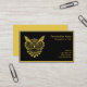 Ajoutez un design artistique à un carte de visite professionnel. Personnalisez l'Elegant Gold Wise Owl en noir avec occupation/titre, entreprise et coordonnées. Il crée une présentation unique. Les cartes de visite facilitent la mémoire des gens. CONSEIL : Rendre votre carte de visite encore plus mémorable et fixer un crochet de mémoire personnalisé sur votre carte avant de le donner à quelqu'un.