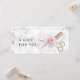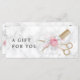 Certificat cadeau moderne et élégant pour coiffeurs avec faux ciseaux et peigne d'or, rose et blanc roses, arrière - plan de marbre blanc et police de calligraphie élégante.