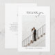 Elégant, classique, monogramme, blanc & noir, mariage 1 photo "Merci" carte. Notre carte minimaliste présente un monogramme subtil et classique qui s'ajoute aux styles mariage traditionnel et contemporain. Cette conception polyvalente se fond sans effort avec n'importe quelle palette de couleurs, offrant des possibilités infinies de refléter votre personnalité et le style de votre mariage. Disponible en version imprimée de haute qualité ou en téléchargement numérique écologique, parfait pour ceux qui préfèrent une empreinte carbone plus petite. L'option numérique est non seulement durable, mais aussi idéale pour ceux qui apprécient la flexibilité et aiment personnaliser leurs invitations. Grâce à une fonction d'édition facile à utiliser, vous pouvez rapidement customiser vos initiales et d'autres détails importants pour rendre votre invitation vraiment unique. Que votre mariage soit classique ou moderne, cette invitation apportera une touche de beauté intemporelle et de style sobre à votre célébration.