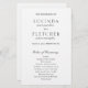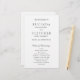 Élégant programme de mariage noir et blanc avec un design simple et minimal avec les noms de la mariée et du marié dans une police serif traditionnelle et le milieu et les noms de famille dans un élégant script de calligraphie. Un style classique qui conviendra à merveille à une mariage officielle.