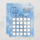 Elégante aquarelle bleu calligraphie Fête des mariées Bingo Funny Jeu avec le titre "Elle est sur le nuage neuf".