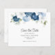 Élégant aquarelle florale bleu poussiéreux, blanc et bouquet floral marine enregistrer la date de mariage avec carte code QR. La carte présente un "Enregistrer la Date" écriture, qui peut être changé pour un type de police de votre choix qui sont disponibles ici lorsque vous cliquez sur le bouton "Personnaliser". Ajoutez votre site web de mariage et code QR au verso pour que vos invités puissent se tenir au courant de vos plans
