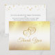 Elégant faux or métallique et blanc avec confetti d'or cartes de remerciement avec monogramme enchaîné coeurs dorés et MERCI de script de calligraphie sur le devant et votre message de remerciement préimprimé optionnel sur le dos ou supprimer l'exemple de texte pour laisser le dos vide pour l'écriture manuscrite notes personnelles d'appréciation. Contactez le concepteur via Zazzle Conversation ou makeitaboutyoustore@gmail.com si vous souhaitez modifier ce design, sur un autre produit ou des éléments de coordination.