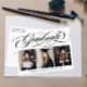Elégante Photo Collage Graduation Party Faire-part Carte postale. Caractéristiques de la conception script de typographie '' gradué'', 3 photos du diplômé, nom, classe de sur le devant et votre message sur le dos.
