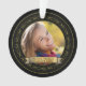 L'ornement de maintien de la graduation avec un cadre circulaire et une bannière tourbée en noir et or pour vous permettre de personnaliser avec votre photo, nom et année de classe sur le devant. Sur le dos se trouve notre illustration casquette originale et un espace supplémentaire pour vous de personnaliser avec votre nom d'école et d'autres textes spéciaux tels que "Président de classe" ou "Valedictorian de classe".