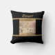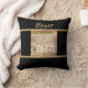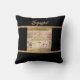 Magnifique coussin de jet noir avec des lignes d'accent abstrait beige et un carreau central présentant des hiéroglyphes égyptiens. Un oreiller central étonnant ajoutant une touche et un impact à tout canapé ou lit !