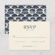 This elegant wedding RSVP card features a minimalist design with a cream-colored background and dark navy blue text. The layout is clean and sophisticated, utilizing serif fonts for a classic look, complemented by a cursive script that adds a personal touch. The card includes options for guests to indicate their attendance, ensuring clarity and ease of use. Perfect for formal occasions, this design exudes an air of refinement and simplicity, making it ideal for couples seeking a timeless and understated invitation style.