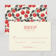 This wedding RSVP card features a minimalist design with a soft cream background and bold, deep red text for the "RSVP" heading. The layout is clean and elegant, incorporating a simple cursive script as a decorative element, adding sophistication without overwhelming the straightforward sans-serif typography used for response options. The color palette of cream and deep red creates a subtle contrast, enhancing readability while maintaining an understated elegance. Perfect for formal events, this card ensures clear communication of attendance intentions with its direct and organized composition.