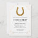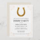 A sophisticated Derby Party invitation featuring a luxurious gold horseshoe on a soft ivory background. Perfect for Kentucky Derby celebrations, horse racing events, garden parties, and classy outdoor gatherings. Clean typography and subtle vintage details give this invitation a timeless, refined look.