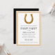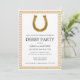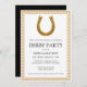 A sophisticated Derby Party invitation featuring a luxurious gold horseshoe on a soft ivory background. Perfect for Kentucky Derby celebrations, horse racing events, garden parties, and classy outdoor gatherings. Clean typography and subtle vintage details give this invitation a timeless, refined look.