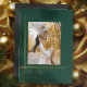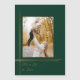 Faites une déclaration de vacances sobre mais impactée avec ce style art déco moderne et élégant avec des lignes chic en or mince dégradé entourant un seul modèle photo d'aspect portrait avec un chasseur profond arrière - plan vert et une police complémentaire.