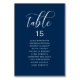 Dîner mariage Carte de tableau de table d'hôtes, moderne élégant Script bleu marine. Customisez le texte et / ou retirez et remplissez avec votre thème de mariage.
