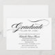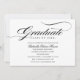 Invitation de la fête de graduation avec le mot "diplômé" dans un élégant script noir avec les détails de la fête en dessous.