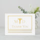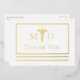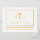 Graduation blanche simple, élégante et moderne ou médecin professionnel "MD" "Merci" avec un véritable film d'or caduceus avant et texte avec cadre rectangulaire et double ligne de fond et design de carte postale de texte noir avec modèle arrière pour l'adresse de retour. Design original par Holiday Hearts Designs (tous droits réservés).