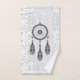 Fond blanc Abstrait avec un réseau géométrique de lignes et de cercles avec un élégant attrapeur en argent comme pièce centrale. Vibes boho modernes