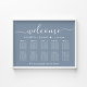 Elégant téléchargeable, un poster de mariage bleu poussiéreux pour 10 tables maximum avec "bienvenue" dans un script blanc chic, vos noms et date de mariage réunis par un coeur et "Nous sommes si heureux que vous soyez ici" dans la typographie classique de serif blanc. Vous pouvez sélectionner l'option de téléchargement numérique à modifier avec des modifications de dernière minute et imprimer localement.