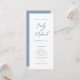Notre élégant programme de mariage bleu poussiéreux avec une combinaison d'un magnifique script de calligraphie associé à un texte simple et propre est parfait pour votre célébration mariage chic. Avec du texte bleu sur un arrière - plan blanc à l'avant de la carte, le revers bleu tonale a un texte blanc contrasté, créant un look surélevé pour compléter votre événement élégant. Facile et rapide de customiser avec tous les détails de votre événement et de votre fête de mariage.