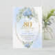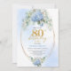 Elegant Dusty Blue Floral 80th Birthday Invitation