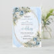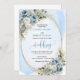 Set the tone for an unforgettable celebration with this elegant watercolor wedding invitation, beautifully designed with dusty blue florals, soft white peonies, and delicate eucalyptus