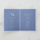 Célébrez votre journée spéciale avec cet élégant programme de mariage floral bleu poussiéreux. Doté de fleurs d'aquarelle douce et d'une typographie raffinée, ce design offre un agencement intemporel pour guider les invités à travers votre cérémonie. Parfait pour les mariages romantiques, il allie style et fonctionnalité, en gardant vos invités informés tout en complétant votre thème de décoration florale.