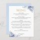 Elégant Dusty Blue Gold Floral Mariage Diner Menu