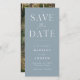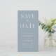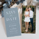 Annoncez votre date de mariage avec cette photo moderne et élégante enregistrez la carte de date. Le design comporte "Save the Date" sur le devant en blanc serif et des polices de script avec un arrière - plan bleu poussiéreux. Personnalisez le minimaliste enregistrez l'annonce de date en ajoutant vos noms, date et emplacement mariage. La carte inverse pour afficher votre photo fiançailles préférée. Le simple enregistrement de la date annonce est parfait pour n'importe quel thème mariage.