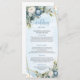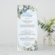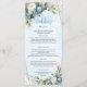 Elégant Dusty Blue White Gold Floral Mariage Menu