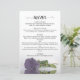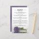 Ces beaux menus mariages sont simples, élégants et élégants tout en étant abordables et abordables. Elles présentent un design élégant et séduisant avec un titre de calligraphie script et un rose unique couleur violet poussiéreux se reflétant dans un bassin d'eau avec vagues et ondulations. Le dos est une belle couleur lilas ou lavande marbrée avec les noms du couple et la date mariage en bas.