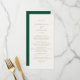 Ce menu de mariage élégant présente un design moderne chic. L'avant est une crème avec une typographie or moderne, tandis que l'envers est un vert émeraude foncé avec vos initiales dans une typographie or. Personnalisez avec vos noms, date mariage et votre menu.