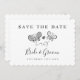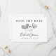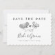 Élégant enregistrer les cartes de date pour mariage fantaisiste. Cartes classiques pour rappeler à l'invité. Joli modèle design avec deux papillons romantiques en amour. Idéal pour un mariage chic au printemps. Exemple noir et blanc. Personnalisez avec des couleurs et des noms personnalisés. Une partie de la collection plus grande avec papeterie de luxe et décorations du printemps. Bordure de Saint-Jacques facultative.