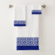 Élégant ensemble de serviettes de bain bleu et blanc royal. motif vintage grec sur bleu et blanc.